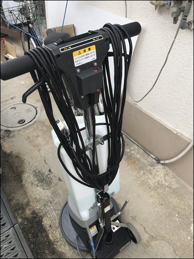 当店は、ハウスクリーニング(いわゆる室内清掃)が8割くらいで、床洗浄、ワックスがけなどの作業は、作業全体の2割くらいだと思うのですが、それでもポリッシャーは、ある程度広い面積の床になると必要ですし、床の定期清掃があるので、ちょくちょく出番があります。