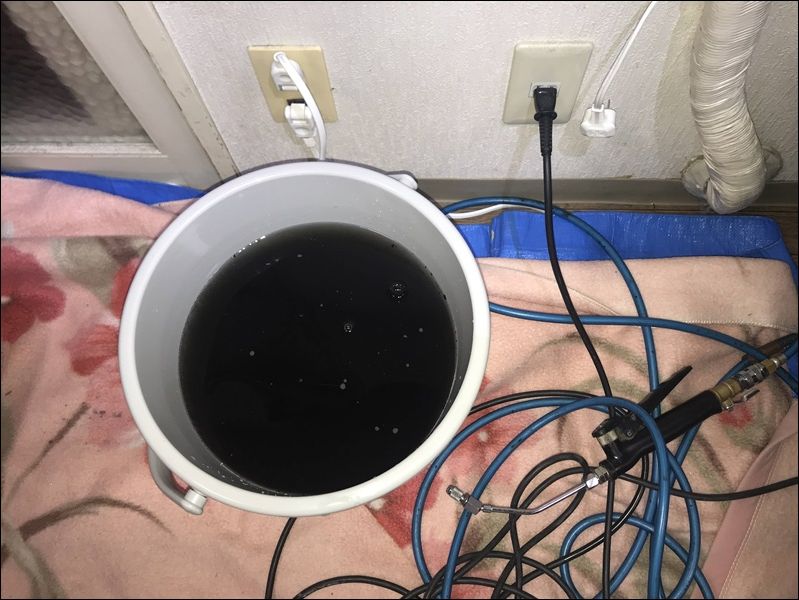 目の前で洗浄後の汚れた洗浄液を見せていただき